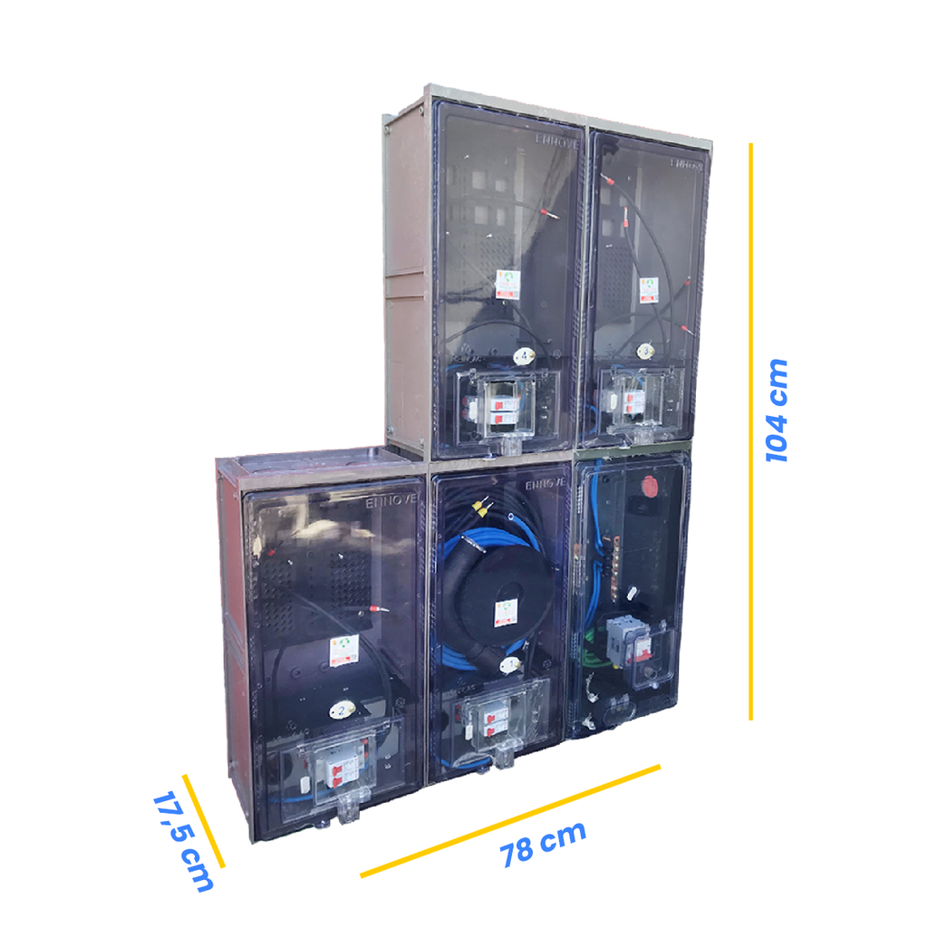 - 4 Caixas padrão Enel em policarbonato + 1 Caixa de Proteção Geral e Barramento;
